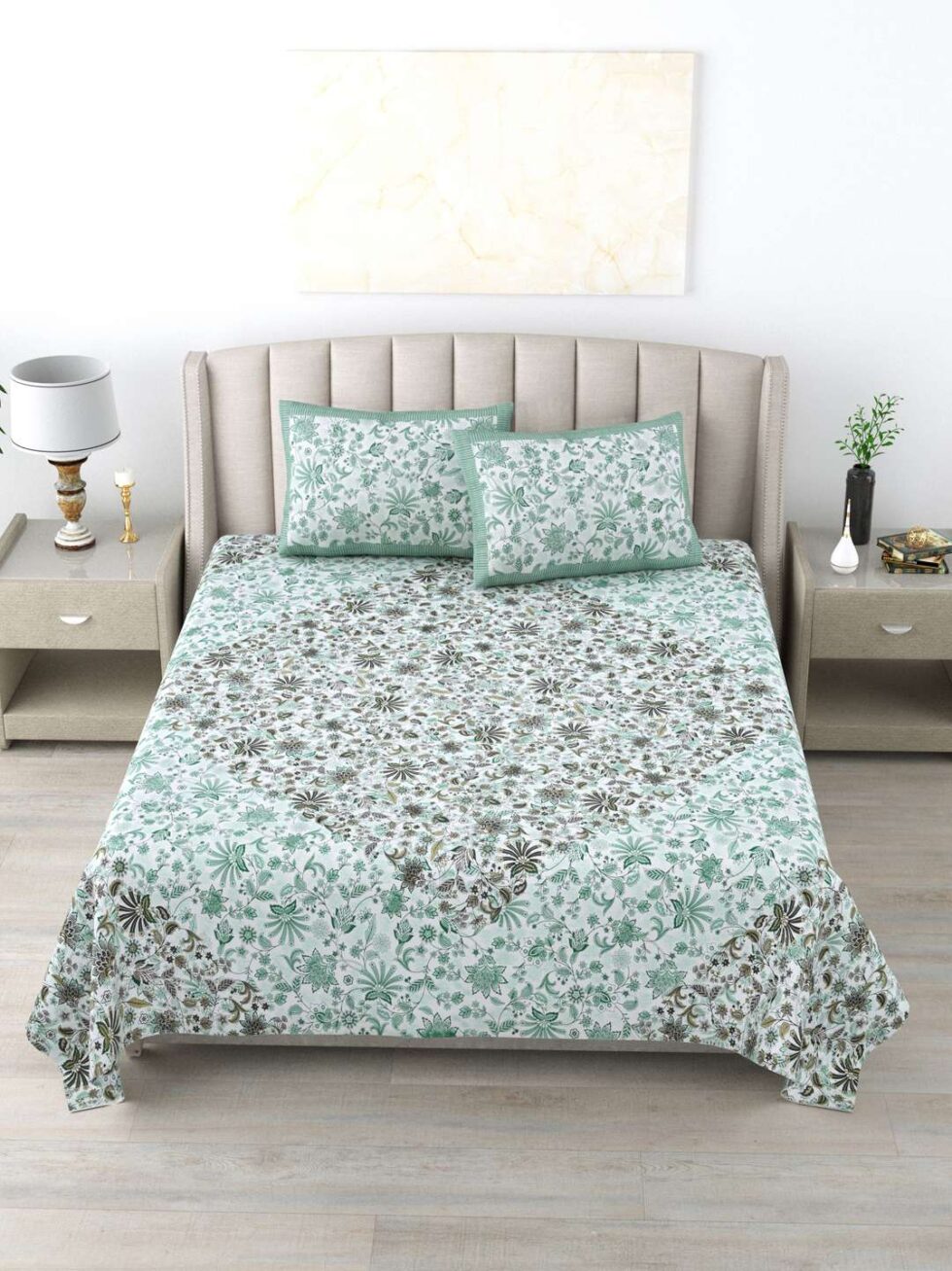 100% Pure Cotton Traditional Printed Bedsheet for Double Bed King Size Bedsheet with 2 Pillow Covers